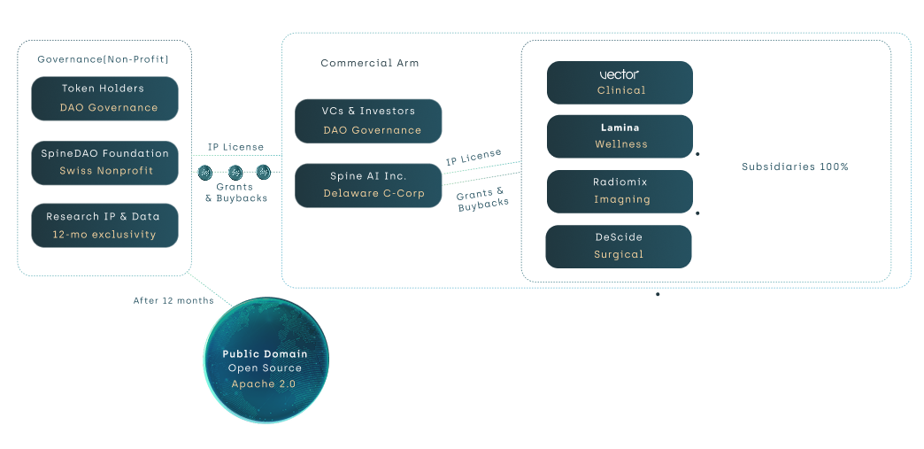 We're building an AI stack dedicated to spine wellness and health, a collaborative effort led by our DAO members. To guarantee our products effectively meet real-world demands, we developed a platform with a token-based incentive framework designed to fairly recognize and reward expert contributions. Physicians and clinicians are incentivized for high-value activities such as labeling clinical data, contributing structured annotations, and formalizing clinical reasoning derived from real-world practice. Engineers collaborate closely with medical experts to translate this expertise into robust, auditable, and clinically relevant systems.
